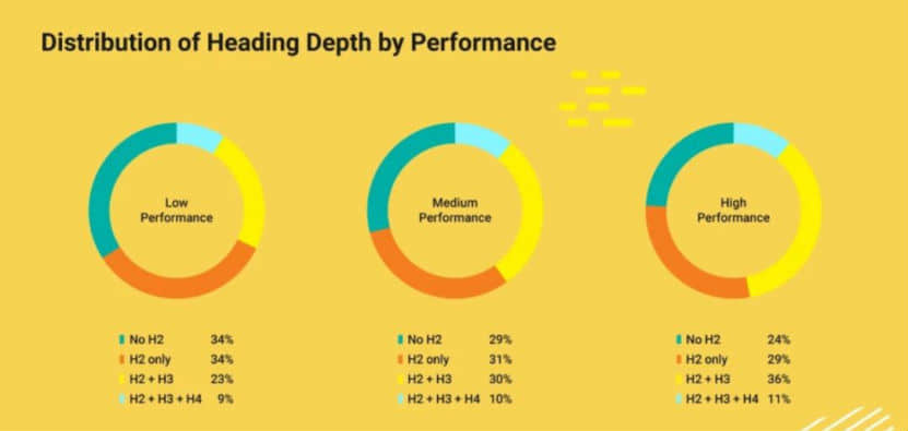 至關重要結果:H2+H3為**組成,36%包括H2、H3的文章內容,在總流量、谷歌排名層面主要表現更優。另一方面,文章內容中盡量避免出現H4標識。過度優化的文章內容,非常容易讓閱讀者造成厭倦心態。