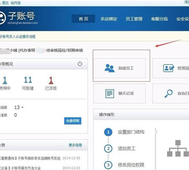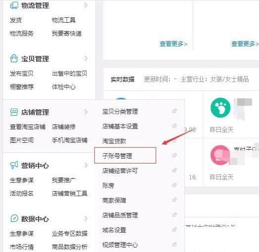 - 進入店鋪后臺,選擇店鋪管理菜單欄;子賬號管理設(shè)置