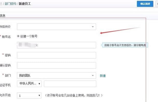 - 信息填寫完之后,選擇保存即可,需要注意的是,子賬號的名稱確定之后,不可修改;